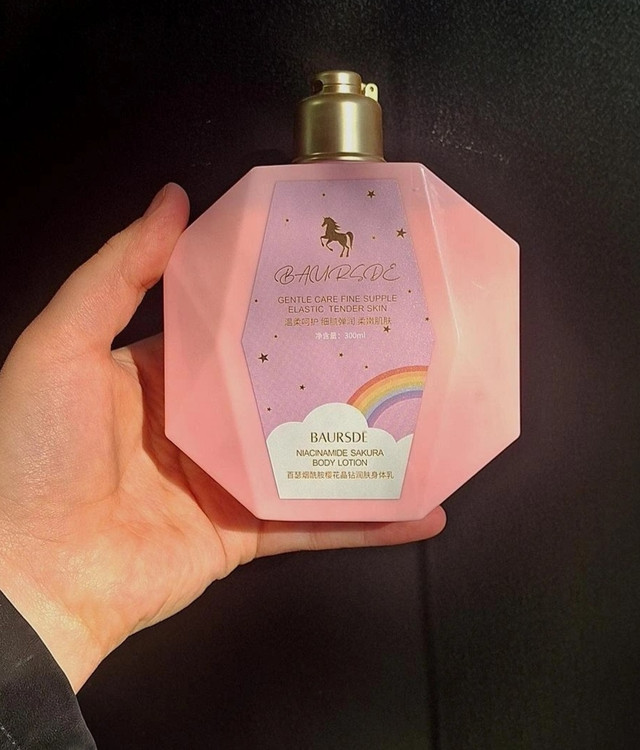 لوسیون یونیکورن شاین دار که برجستی خوشگلی روی پوسن نشان میده شاین صورتی با رایحه شرین جلو گیری از پیری زود رس و خشکی پوست جلو گیری از پوست مرغی شدن پوست بدن رطوبت رسانی و ابرسانی داره