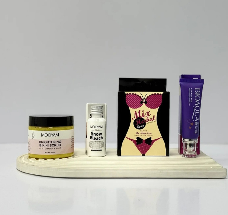 پک روشنکننده بیکینی یک مجموعه کامل مراقبتی برای نواحی حساس بدن است که با ترکیب چهار محصول تخصصی از برندهای معتبر، بهطور مؤثر تیرگی، لک و زبری پوست در نواحی بیکینی و زیر بغل را کاهش میدهد.